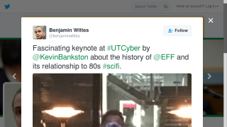 RT @benjaminwittes: Fascinating keynote at by @KevinBankston about the history of @EFF and its relationship to 80s